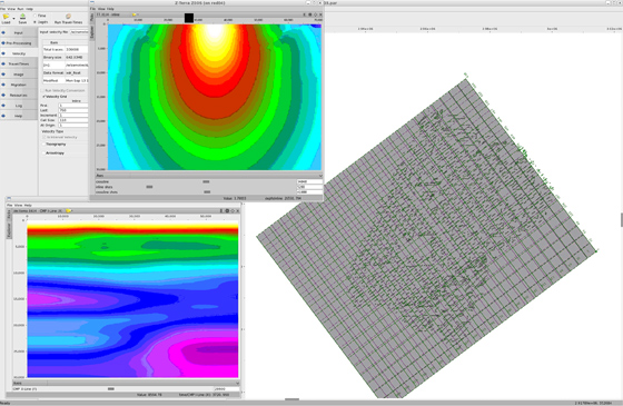 ZTK includes many integration features that enable the user to quickly set up and QC the job: a base map viewer, grid definition and input data geometry controls, a SEG Y viewer for the input data and trace header information, topography specification for land and OBC data, and 2-D and 3-D viewers for the velocity model, travel times, stacks, and gathers.